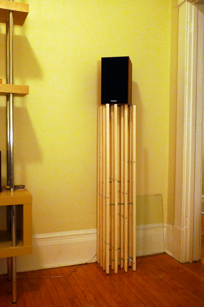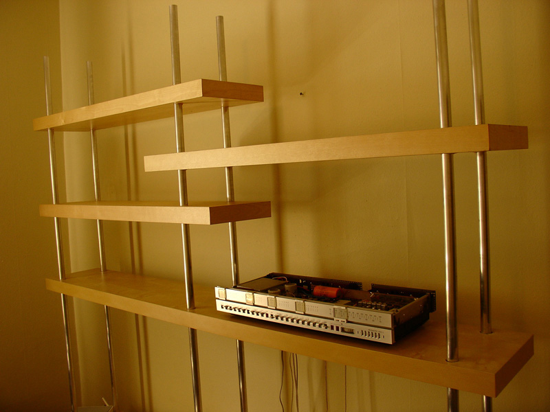 Shelving/entertainment unit: aluminum tubing; beech laminate & MDF. 2009