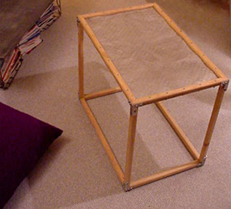 Galaxy light box table: painted MDF; tempered glass; yellow gas pipe off-cuts (legs). 1999