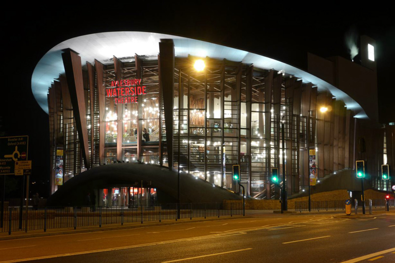 Award-winning landmark entertainment venue in Aylesbury, Buckinghamshire, with a 1,200-seat auditorium which can be converted to a 1,800 standing hall. Designed primarily for pop/rock concerts, it also caters for ballet, opera and theatre. Other features include foyers, bars, box office and a 225-seat function space – designed for flexible use including conferences, screenings, drama and dance recitals. Design team (clock tower, plinth & glu-lam beams); construction documents & construction administration. (Photos from Flickr & RHWL Architects)